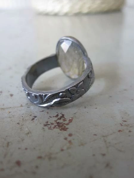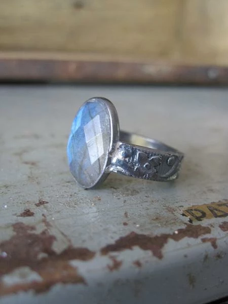 925 Silver Oval Labradorite Ring Perfect for stacking or wearing alone sizes: Oxidised silver band with an oval faceted labradorite stone Please note natural stones may vary in colour, pattern shape and size.