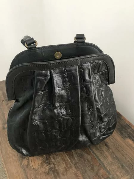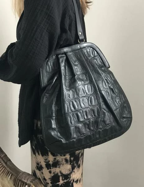CollardManson Anya leather bag with shoulder strap – Black croc Inner zipped pocket Dimensions approx. 35cm x 37cm.