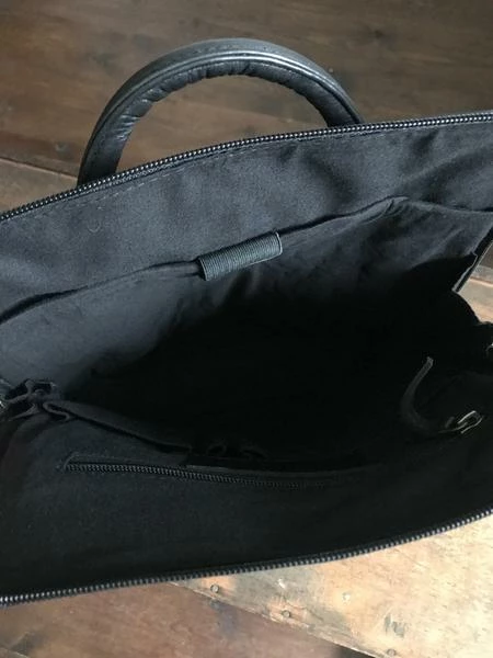 CollardManson Backpack- Black floral embossed Leather – with adjustable cotton web straps Inner zip and slip pocket.