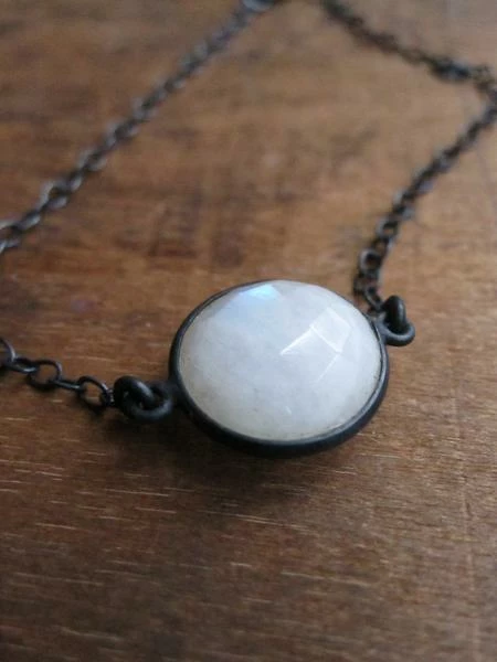 Black Oxidised Silver bracelet with faceted rainbow moonstone Length 20-23cm.