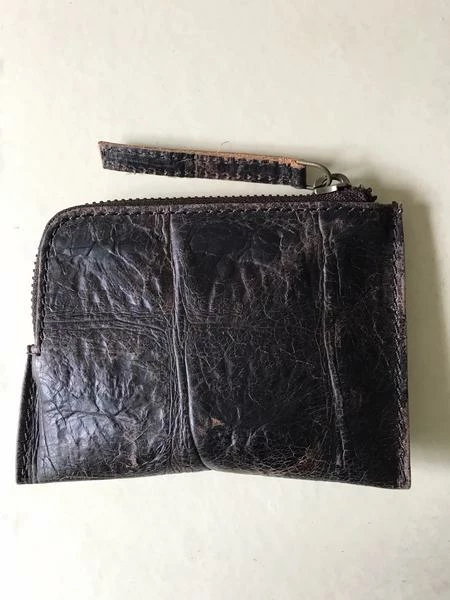 Brown crocodile pattern leather wallet. This classic card wallet is as practical as it is stylish. A simple zip with room for all of your cards, cash, and coins.