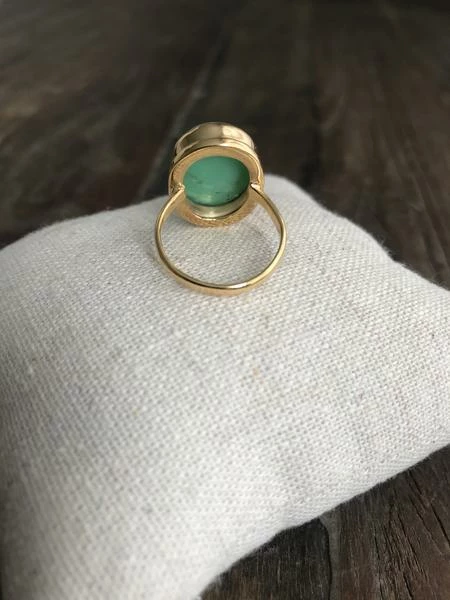 925 Silver with gold plated ring and Chrysophrase stone Please note natural stones may vary in colour, pattern shape and size.