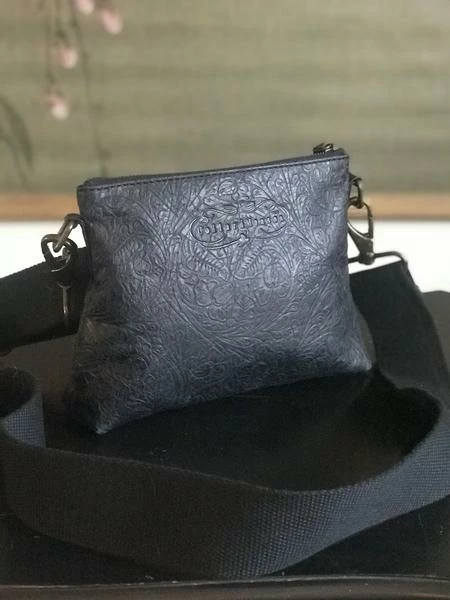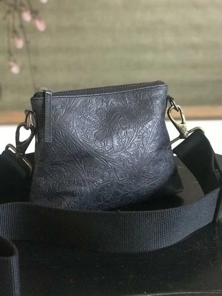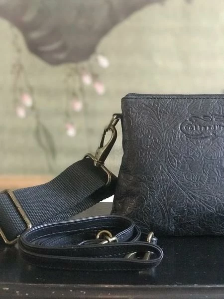 CollardManson Elsie Bag- Black Weathered Tool Leather This beautiful CollardManson bag is both practical and timeless. The leather bag is made with beautiful soft leather. Inside is secure with a brass metal zip, cotton lining, one inner slip pocket, and an adjustable should strap. Italian embossed leather. Dimensions H:22cm x W:23cm (widest part) x D:16cm approx.