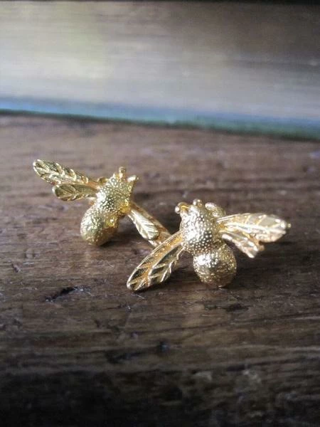 925 Silver Bee Earrings in gold from Collard Manson. Handmade.