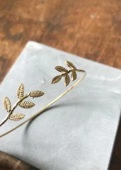A pretty and delicate open bracelet with fern foliage detail. Material: 925 Silver with gold plating Size approx: Dia 70mm Deliveries.