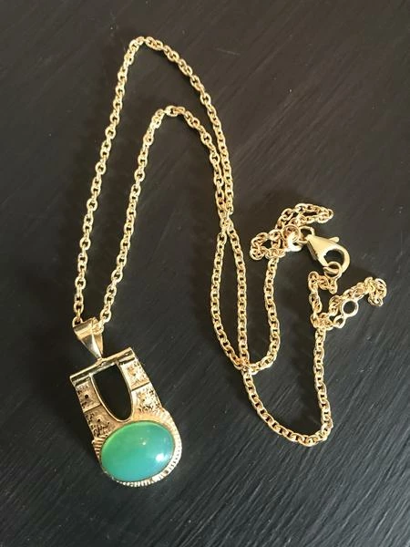Bringing a little glamour to your style. The gold Luna necklace resembles an extravagant decoration from the 1920’s or jewellery from an Egytian Queen. Chain Length: 46cm. Gold plated 925 silver. Please note natural semi precious stones may vary slightly in shade and shape.