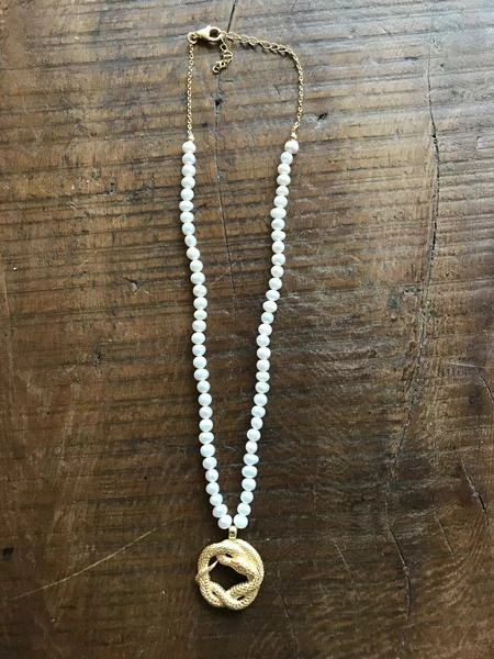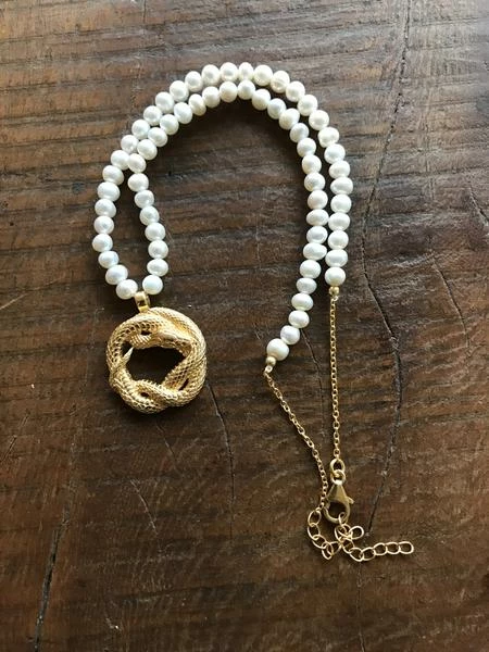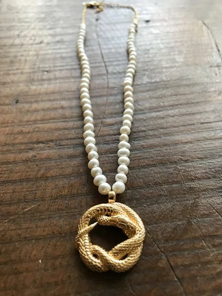 CollardManson Pearl Necklace W/Snake – Gold