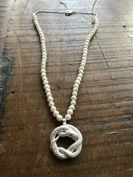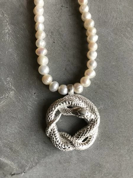 Details 925 Silver chain with imitation pearls and snake pendant Material: 925 Silver, / imitation pearls Using recycled silver Chain length: approx. 40-45cm