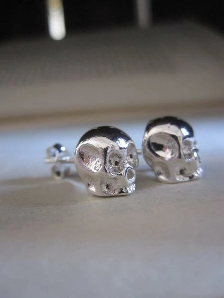 Shiny silver skull studs by CollardManson. These detail skull studs are great for anyone with an edge.