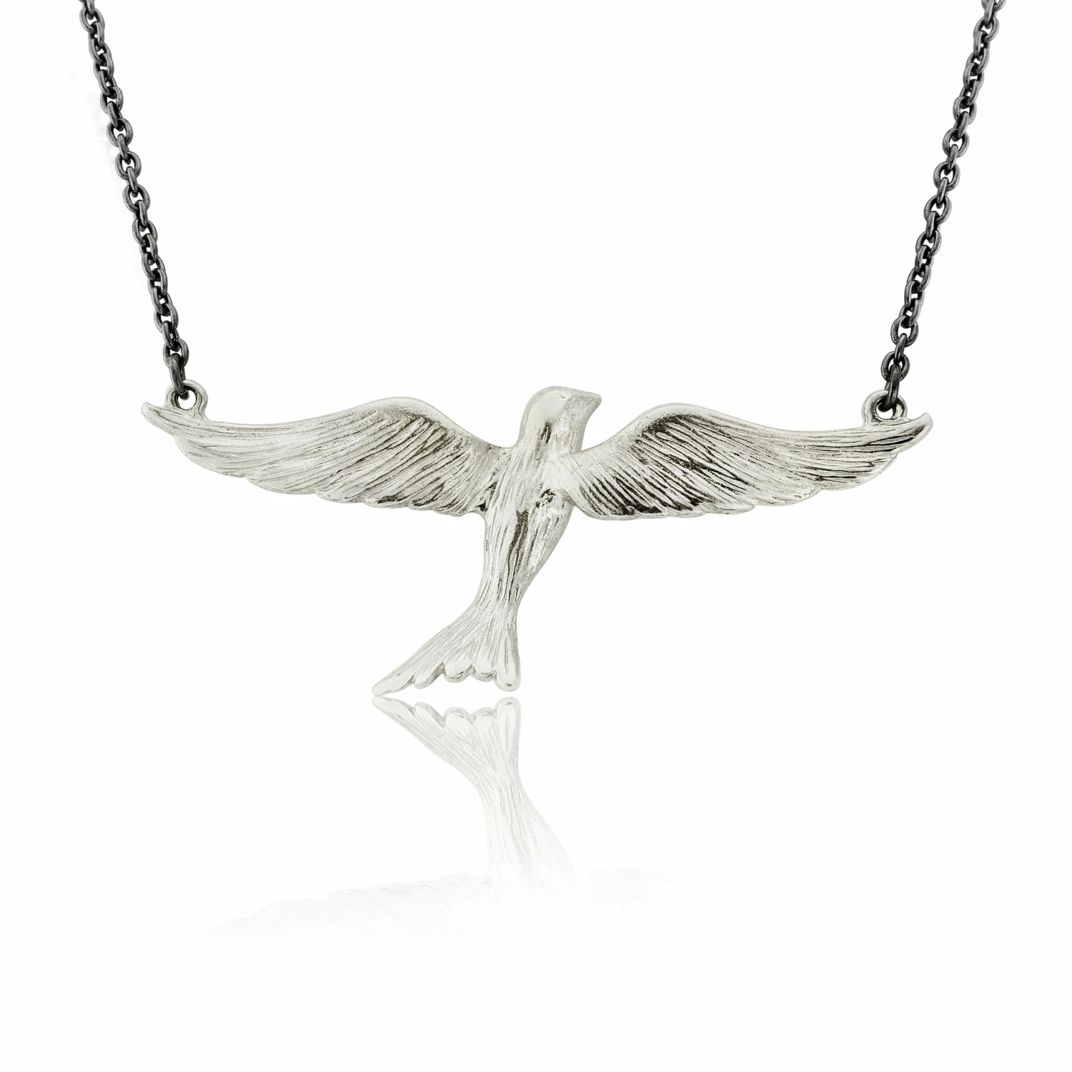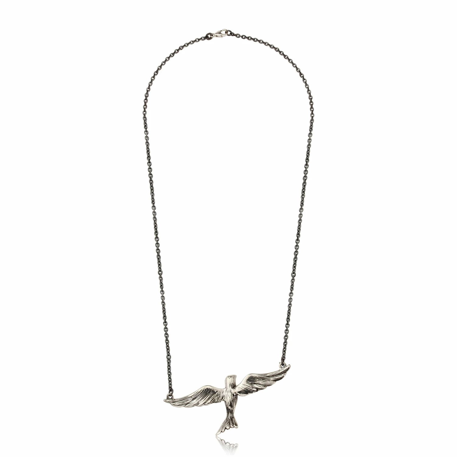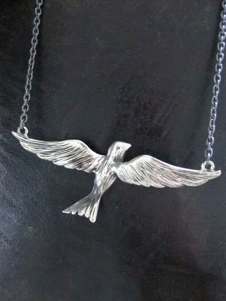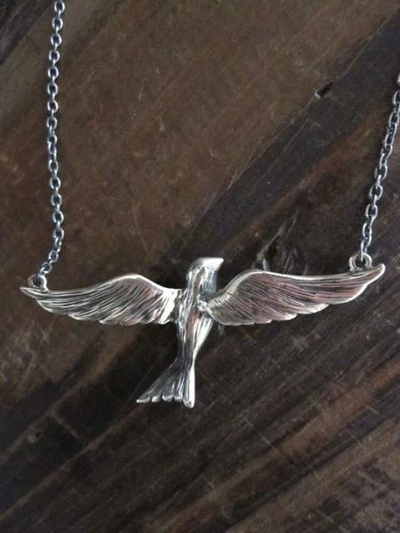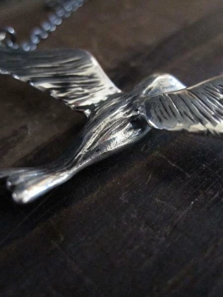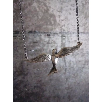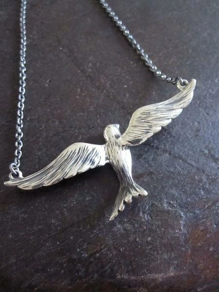 Silver flying bird necklace by CollardManson.