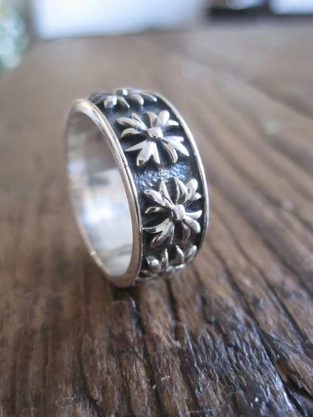 Silver multi patonce cross ring by CollardManson. A wider band that is a real stand out piece, everyone will love this ring.