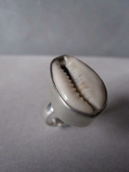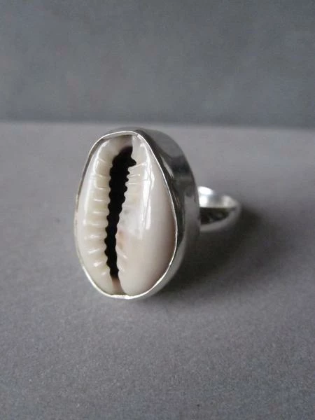 amp; Cowrie shell in a deep simple silver setting. Material: 925 Silver, and natural cowrie shell Size: 5, 6, 7, 8 Due to real natural shell , size / shape may vary very slightly from the picture.