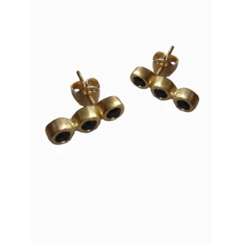 Gold plated 925 Silver studs with 3 small faceted black Onyx stones. 925 silver, gold plating.