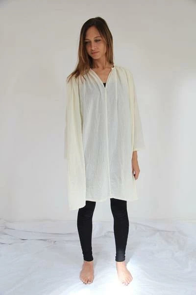 Vanilla smock by CollardManson. This flowing vanilla coloured smock is an essential. Its light weight breathable but full at the same time. This smock also looks great tucked in trousers.