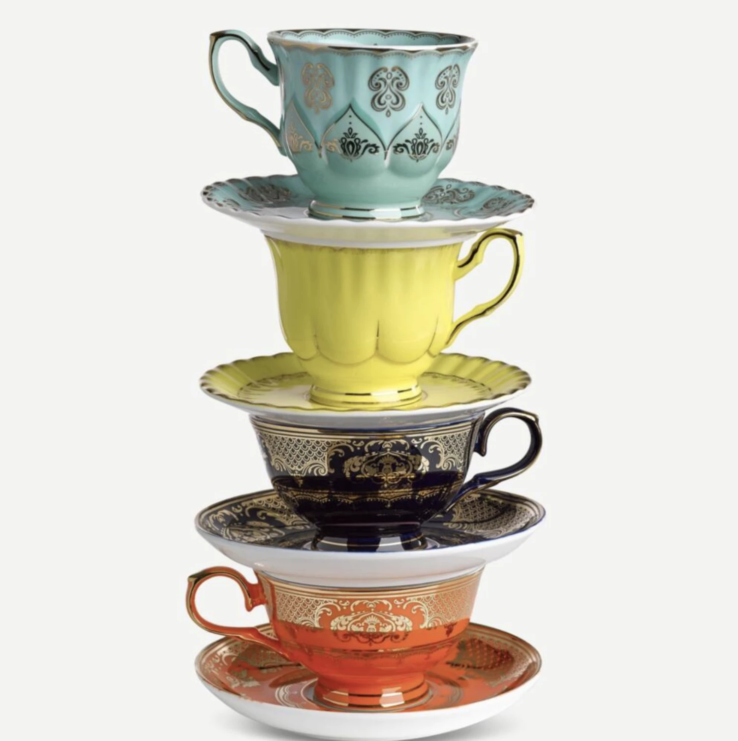 Crafted from glazed porcelain, they come in four colours and two different shapes to create a truly unique dining style. Adorned in elegant gold patterns, they add a sense of occasion to everyday dining and look fabulous paired with more tableware from Pols Potten.