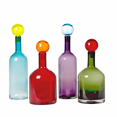 These Colored Glass Bottles Are Designed to Have the Maximum Impact, Handmade and Individually Blown by Mouth. the Use of Intense and Colored Glasses in These Various Sizes Make Each Single Piece Alive and Unique.