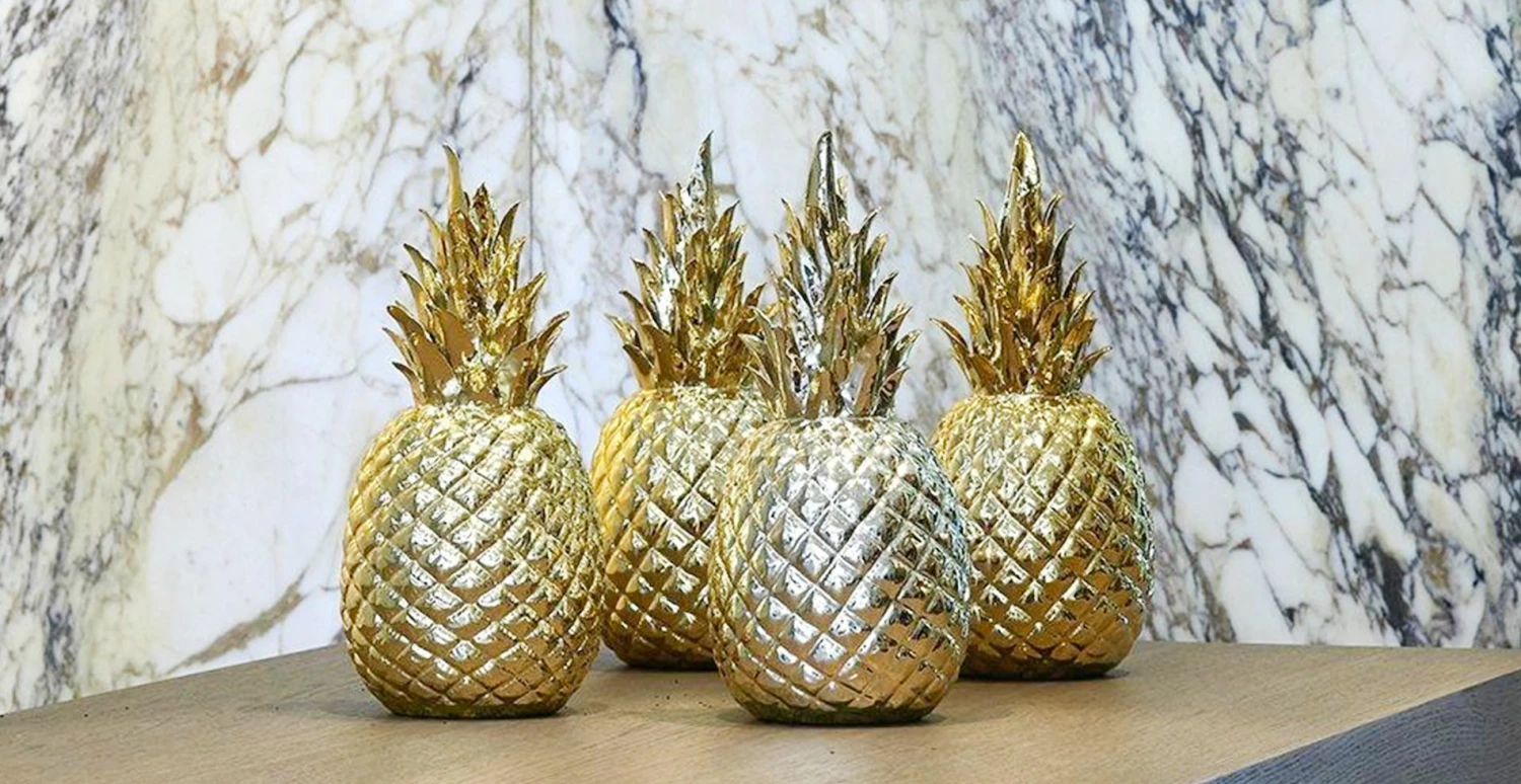 Our Gold Pineapple is detailed with realistic-looking leaves and markings, it’s perfect for the kitchen counter or a mantle, and it’s sure to add a glam and quirky touch to your indoor space.