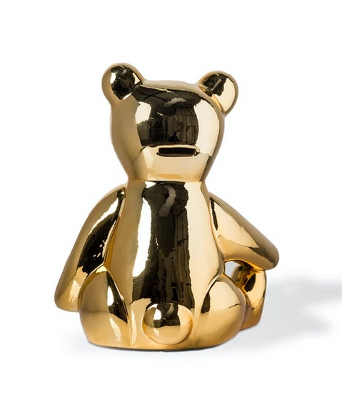 The Teddy Money Box is the newest member of the golden money box family. The teddy design is an accurate representation of a real soft toy teddy. It’s cute, it’s shiny, and it’s the best way to store all of those loose coins. It also makes for a fun shelf decoration.