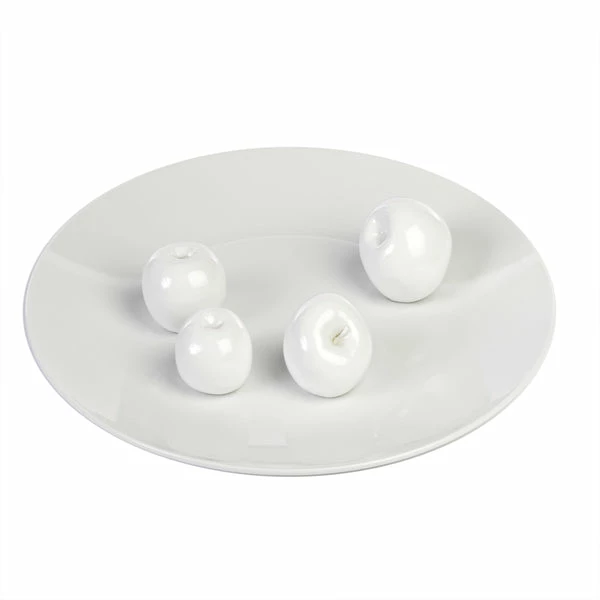 Add a touch of quirky style to your living space with this decorative plate by Pols Potten. Crafted from glazed white porcelain, this plate features four porcelain apples, making it a piece of art and ideal for use as a unique trinket tray. Available in gun design too, each decorative plate is presented in a red gift box making it a great and unusual gift idea.