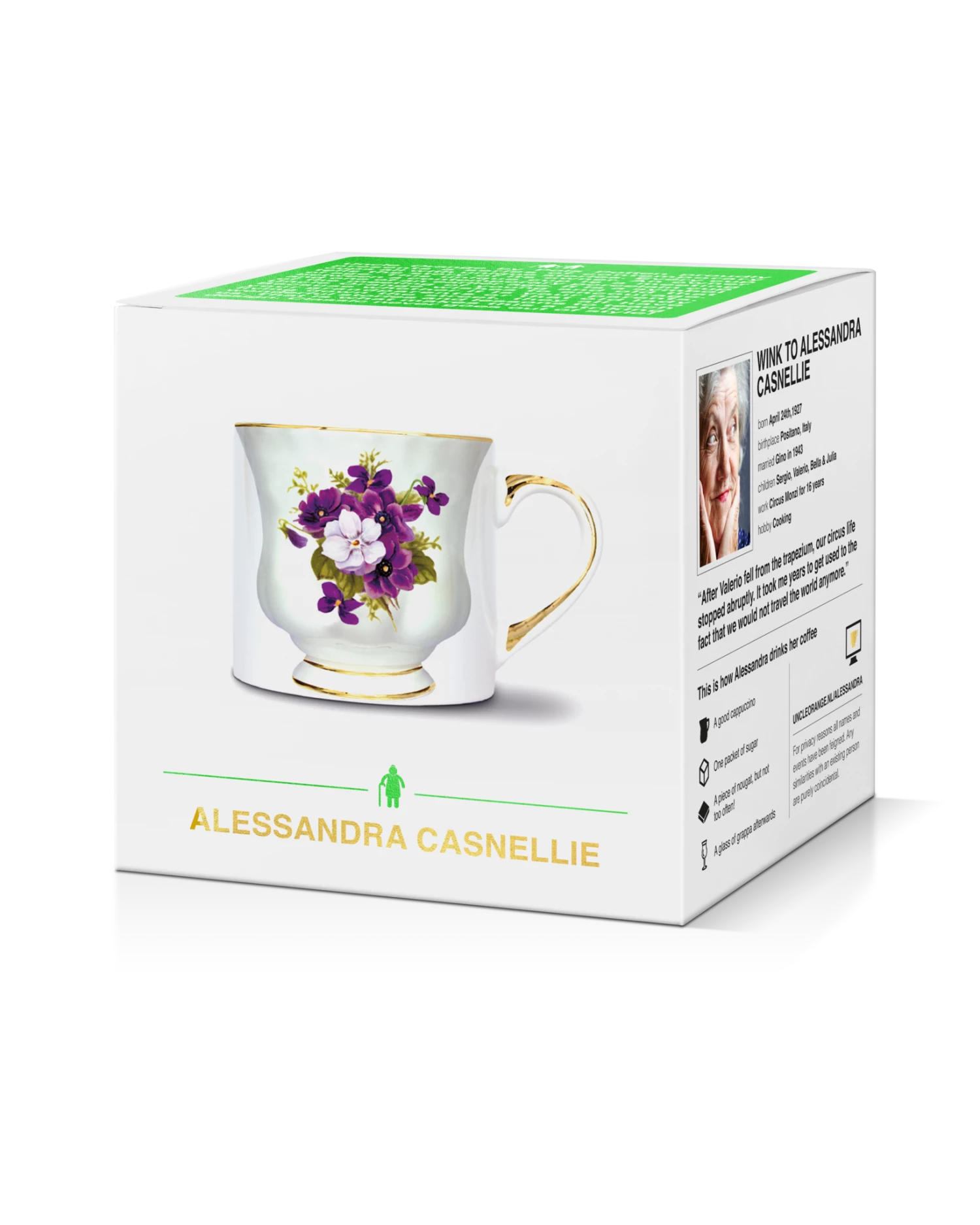 Materials: glazed porcelain Dimensions: L10 x W7,5 x H7 cm capacity: 200 ml per mug Packaging: gift box Design: pols potten studio Handwash only This unique cup is a meeting between a contemporary porcelain cup and one of an earlier age. It is a symbol of the meeting of young and old It is a symbol of the meeting of young and old that we all should encourage. Because whether it is your parents, your grandparents or that old lady living down the street, they all have wonderful stories and lessons to teach us. That is what makes this a striking design. Classic never goes out of style!