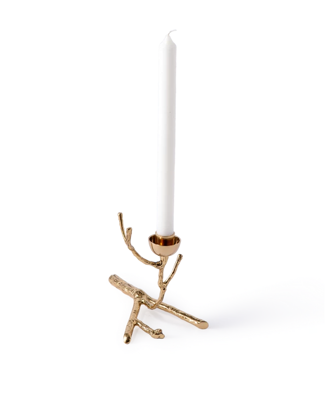 Portavelas dorado en forma de rama.