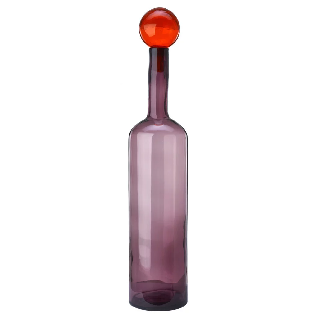 These colored glass bottles are designed to have the maximum impact, handmade and individually blown by mouth. The use of intense and colored glasses in these various sizes make each single piece alive and unique.